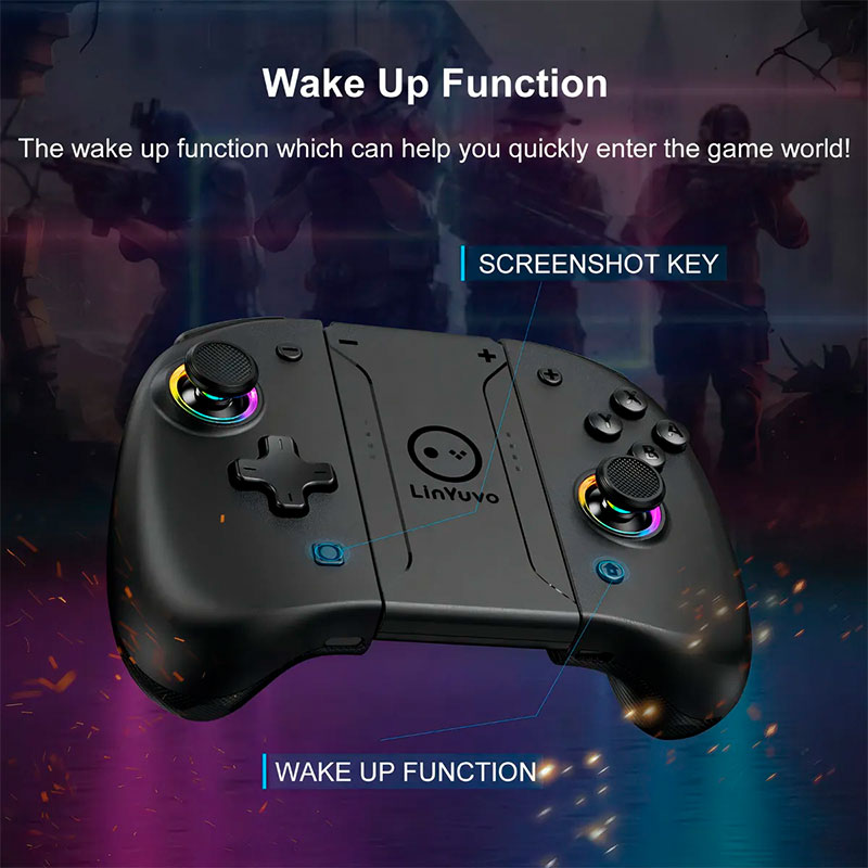 LISTA DE PAQUETES: 1x Joypad Izquierdo 1x Joypad Derecho 1x Grip para unir ambos joypads 1x Manual de instrucciones 1x Cable tipo C para cargar Anillo de luz LED de 8 colores y 3 modos diferentes: ¡Anillo de luz LED ajustable bien diseñado de 8 colores diferentes! Este es el controlador Joy MÁS GENIAL que tiene luz LED de 7 colores y arcoíris, además de 3 modos de luz diferentes: modo de un solo color, modo de cambio de color de respiración y modo arcoíris en los controladores izquierdo y derecho. Función Turbo y controles de movimiento precisos: ¡Mejora la precisión y la exactitud de los juegos! Este controlador con interruptor izquierdo y derecho puede personalizar el turbo con cualquier botón para liberar los dedos de los jugadores y ajustar la velocidad del turbo para adaptarse a diferentes juegos. Los controladores Joypad también tienen controles de movimiento de giroscopio de 6 ejes integrados para iniciar/detener el movimiento rápidamente sin demora. Botón de mapa trasero: Este controlador inalámbrico tiene un botón de asignación trasera (M) que puede asignar uno de los botones al botón rectangular (3L/3R) durante el uso de este joypad. Puede configurar uno de los botones X/Y/A/B/Z/L… para asignarlo al botón rectangular, lo que facilita la activación de botones difíciles de alcanzar.